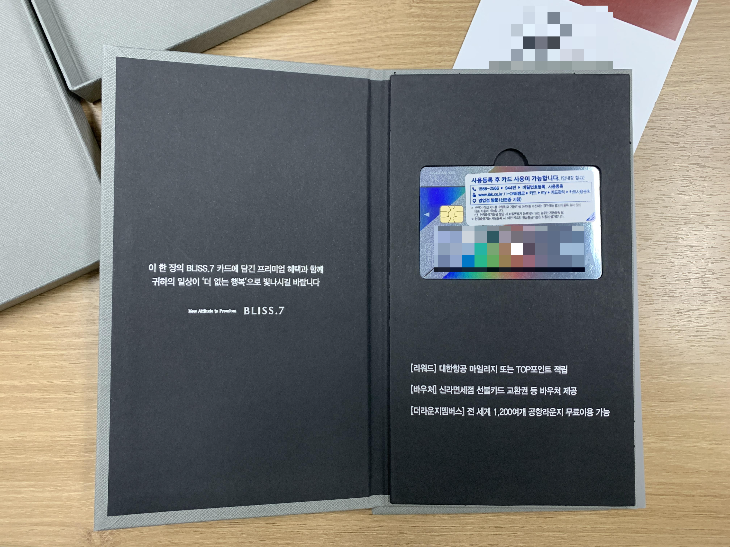 일단 pp카드 때문에 발급받으시더라도 다른 혜택도 알아두면 좋겠죠. 쓸만한 혜택으로는 CGV 콤보 서비스가 있습니다. 전월 실적 30만원을 채우면 1년에 6번 CGV 콤보(팝콘라지 + 콜라 2잔)를 받을 수 있습니다. 카라멜로 변경 시에도 추가요금이 없습니다. 블리스카드 내시고 블리스 할인 받으신다고 하면 됩니다. 또, 해외여행 갈 때 비행기를 bliss7 카드로 긁으시면 자동으로 여행 날짜동안 무료보험에 가입됩니다. 번거롭게 여행자보험을 들지 않아도 되어 편리하네요. 카드를 긁으면 얼마 썼는지 오는 바로알림 서비스 가입도 무료입니다. 신라면세점 VIP 골드카드도 사람들이 잘 모르는 꿀혜택인데요. 오프라인 면세점을 이용할 때 5-15% 할인이 됩니다. 신라면세점 골드카드 즉시발급을 위해서는 신라면세점 인천공항점 제2여객터미널, 김포공항점, 제주점, 제주공항점, 서울점(신라호텔 소재) 안내데스크에서 bliss7 카드를 제시하면 됩니다.